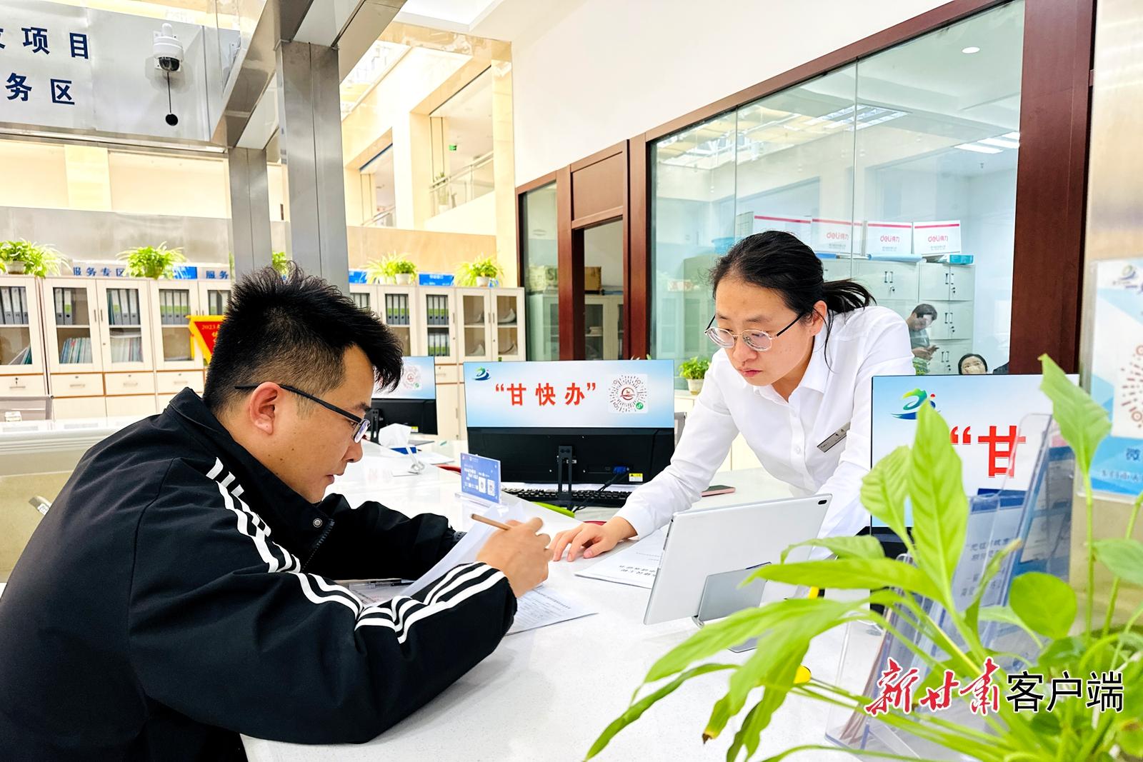 窗口工作人員耐心幫助企業(yè)代表辦事。新甘肅·甘肅日?qǐng)?bào)記者 董文龍攝