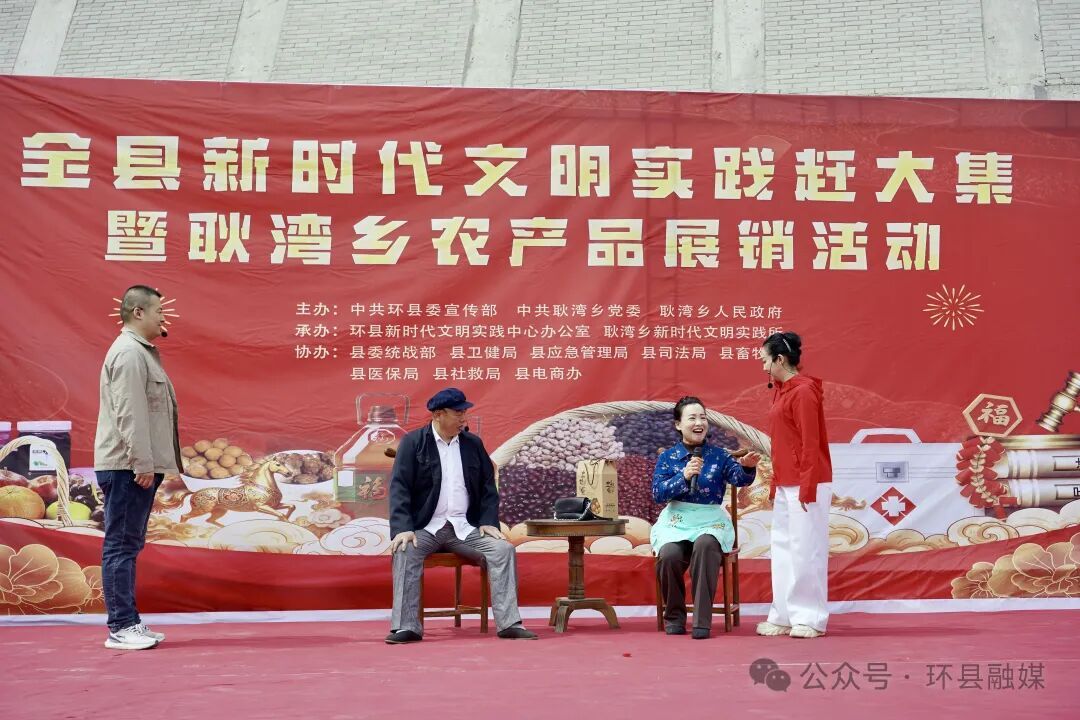現(xiàn)場(chǎng)人聲鼎沸、溫情涌動(dòng),500余名群眾歡聚一堂,沉醉于文藝盛宴的魅力。會(huì)場(chǎng)周圍煙火氣濃郁的展銷攤位上,耿灣鄉(xiāng)及環(huán)縣本地特色農(nóng)特產(chǎn)品琳瑯滿目,涵蓋羊肉、本地雜糧、糧油、應(yīng)季蔬果、手工制品及特色食品等,盡顯地域農(nóng)耕特色與產(chǎn)業(yè)活力,吸引了大批游客爭(zhēng)相品嘗。