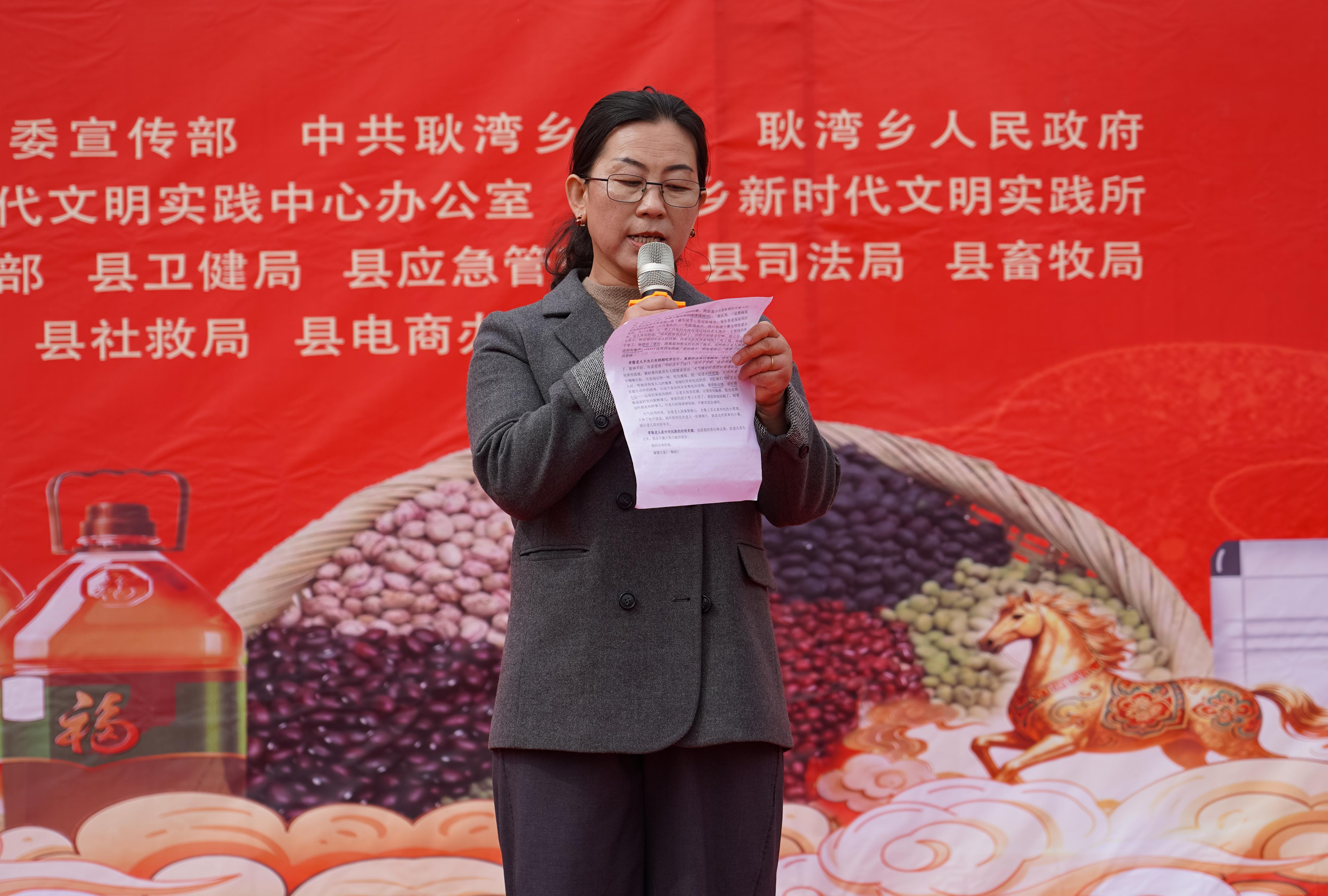 “孝敬老人是我的責任和義務。在老人有生之年我做不到百分之百的孝順,但我盡量做到問心無愧!”耿灣鄉(xiāng)四合原村村民韓芳芳質(zhì)樸的話語,贏得了臺下陣陣掌聲。作為孝老愛親的典型,她分享了自己多年來悉心照料87歲婆婆的日常點滴——從清晨熬煮婆婆愛喝的磚茶,到為方便老人用餐特意準備寬沿碗,從教會老人使用遠程視頻儀器與女兒聊天,到為老人置辦體面的衣物……一個個平凡卻溫暖的細節(jié),生動詮釋了“百善孝為先”的傳統(tǒng)美德,讓現(xiàn)場群眾深受感動。