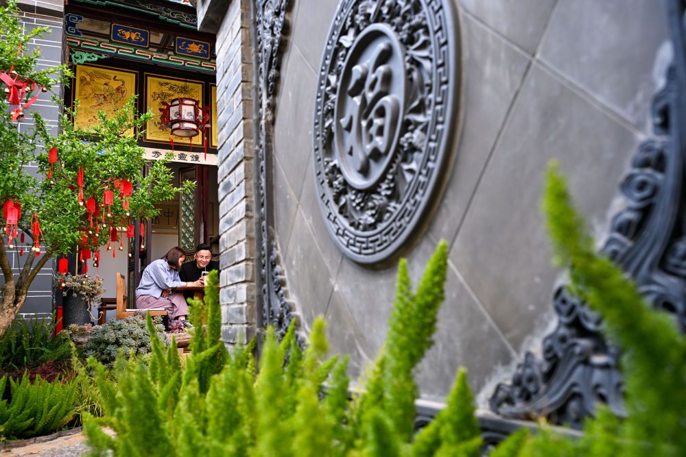 2026年3月24日,游客在會澤縣白霧村的“讀白書院”休閑?!白x白書院”由清代楚黔會館活化利用改造而成,是當?shù)鼗罨霉沤ㄖ⑼苿余l(xiāng)村文化與旅游融合的代表性空間。云南省曲靖市會澤縣娜姑鎮(zhèn)白霧村歷史悠久,曾是明清時期“南銅北運”的首站,村內(nèi)古跡眾多,風景如畫。