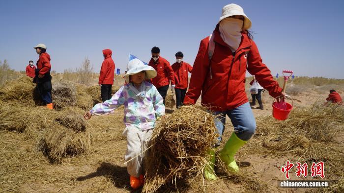 4月18日,“我在沙漠種棵樹(shù) 第2季暨綠洲啟源·沙漠鎖邊行動(dòng)”發(fā)布活動(dòng)在甘肅省武威市民勤縣舉行,來(lái)自全國(guó)各地的200余人自駕千里奔赴沙漠參與公益植樹(shù),以樹(shù)為筆,繪就一幅沙海變綠洲的新畫(huà)卷,助力民勤綠洲鎖邊林帶建設(shè),筑牢河西走廊生態(tài)安全屏障。圖為長(zhǎng)安啟源車(chē)主正有序搬運(yùn)草料和梭梭樹(shù)苗。陳媛 攝