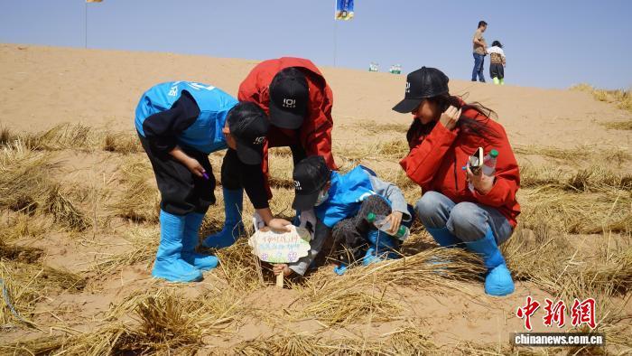 圖為民眾一家種下梭梭樹(shù)后共同立下心愿標(biāo)識(shí)牌。陳媛 攝