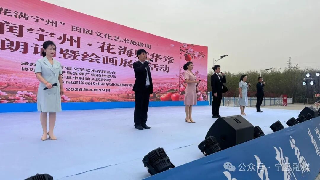 春日寧州,繁花似錦;文脈悠長,詩意盎然。4月19日下午,在“花滿寧州”田園文化藝術旅游周開幕之際,由寧縣文聯(lián)主辦,寧縣作家協(xié)會、寧縣朗誦協(xié)會、寧縣詩詞楹聯(lián)學會協(xié)辦的以“文脈潤寧州?花海賦華章”為主題的原創(chuàng)詩文朗誦暨書法家協(xié)會、美術家協(xié)會協(xié)辦的書畫交流活動在寧縣正洋蘋果公園精彩上演,為這片蘋果花海增添了濃郁的文化韻味,奏響了文旅融合,詩意抒懷的美好樂章。