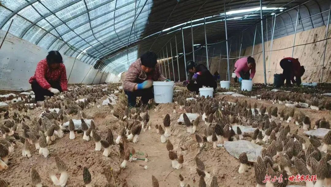同樣的生機,也在城關(guān)鎮(zhèn)原鄭村食用菌生產(chǎn)基地涌動。一座座日光溫室整齊排列,棚內(nèi)羊肚菌迎來采收季,工人們正忙著采摘、分揀、裝箱,一派繁忙的豐收景象?!耙荒昃兔讉€月,捎帶掙一萬元左右,還能把家里娃娃照顧了?!背顷P(guān)鎮(zhèn)原鄭村村民路月愛笑著說。