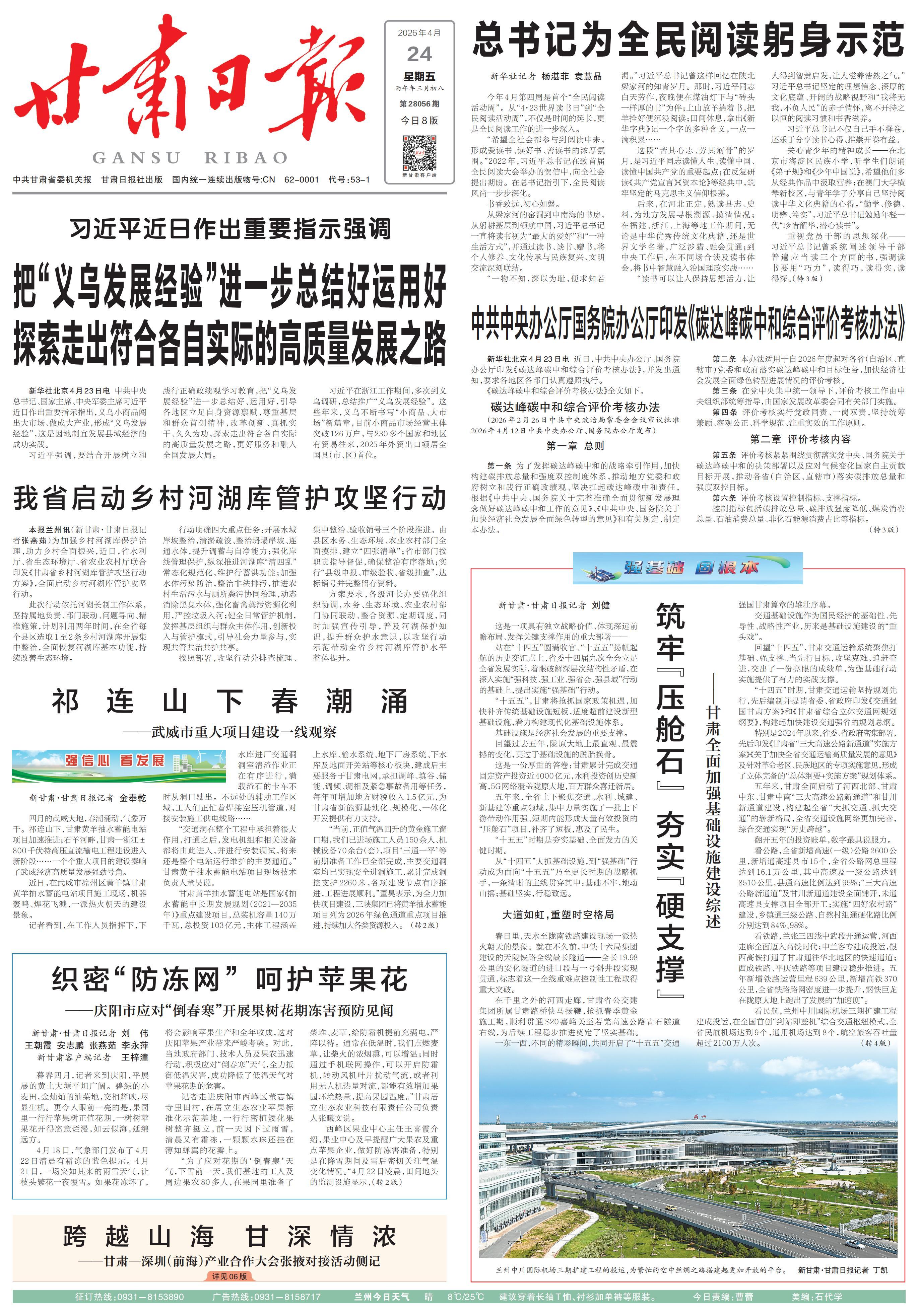 展望“十五五”,隨著強(qiáng)基礎(chǔ)行動的深入推進(jìn),一個基礎(chǔ)設(shè)施更加完備、發(fā)展底盤更加穩(wěn)固、發(fā)展動能更加強(qiáng)勁的現(xiàn)代化甘肅,必將在新征程上書寫出更加精彩的篇章。