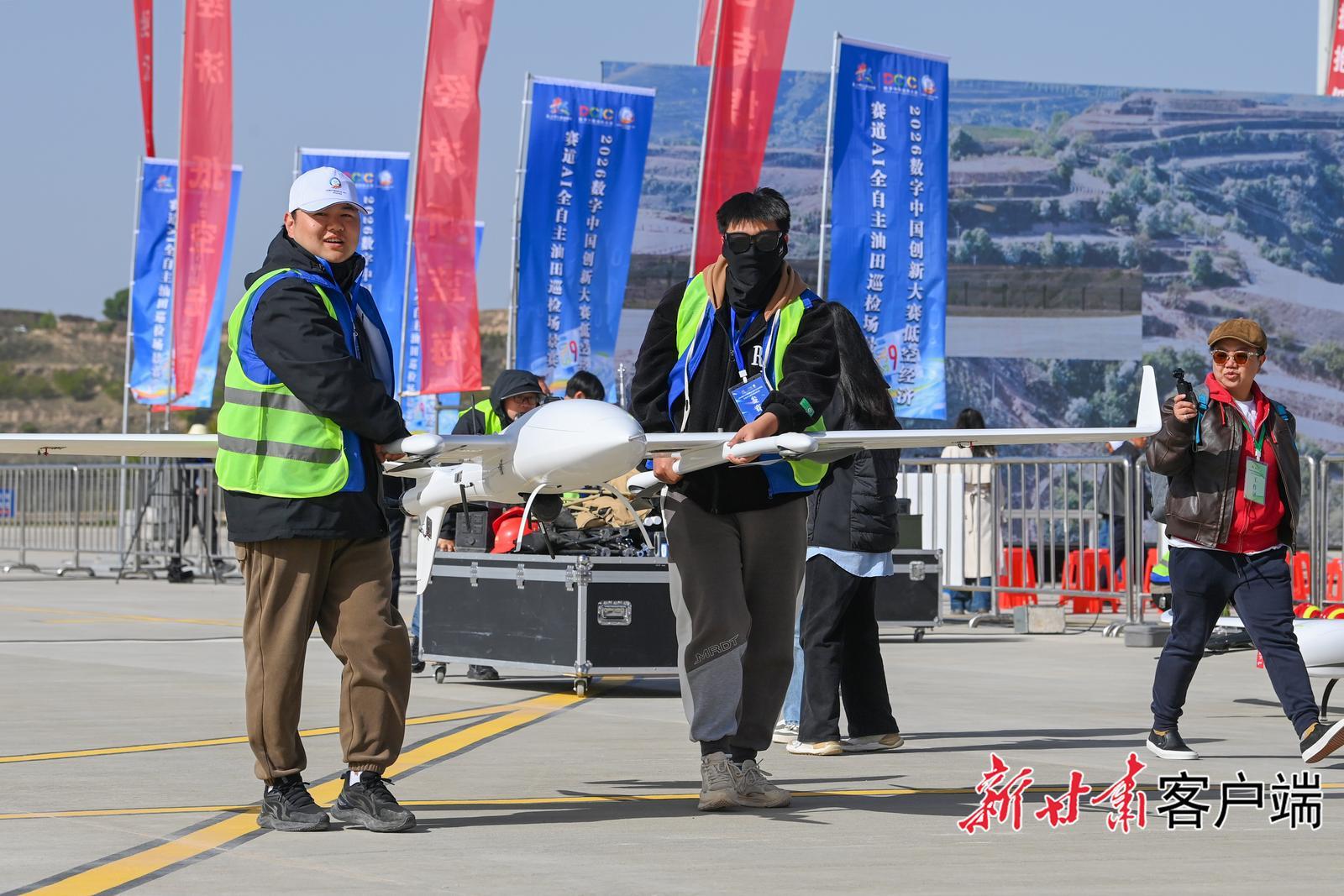 AI全自主油田巡檢場景賽在華池南梁通用機場舉行,圖為參賽選手入場場景。新甘肅·甘肅日報記者 丁凱攝