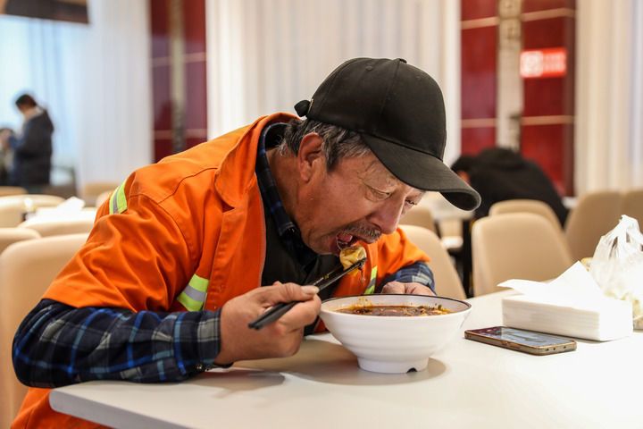“以前干完活就在外面買吃的,每天吃飯要花30元左右,現(xiàn)在按時按點過來吃,每天花10元,吃得也好?!?4歲的環(huán)衛(wèi)工人李仕宏常年一個人生活,他最喜歡吃這里的餃子和干拌面,“量大、味道好,廚師們看我歲數(shù)大,還會煮得軟爛一些”。