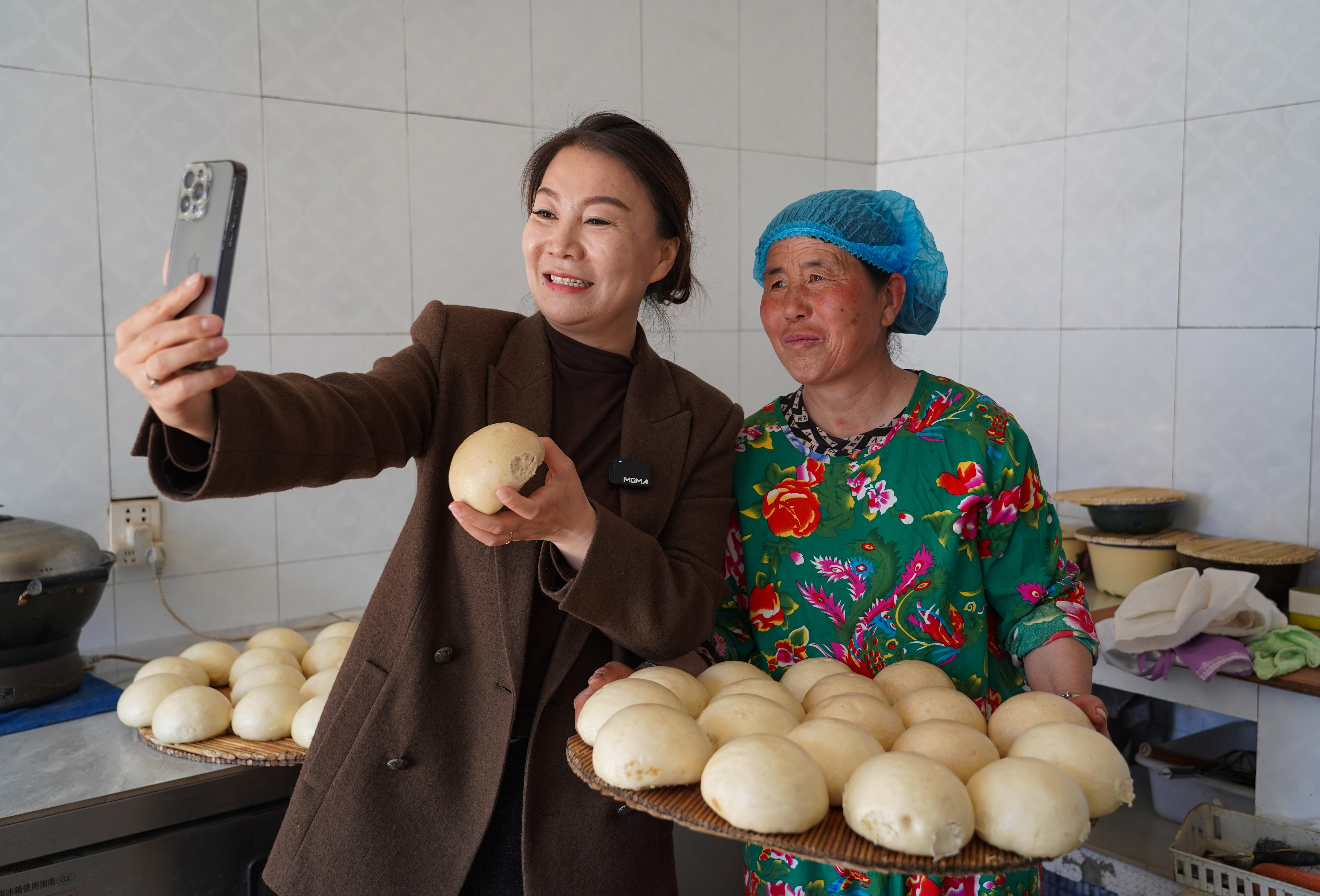每天清晨,她的身影穿梭在村戶之間,對著鏡頭推介石磨饅頭、新鮮果蔬、手工黃酒,熱情回應網友的每一次提問。